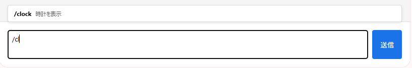 例えば入力欄に「/」と打ち込むと、利用可能なコマンドがサジェストされます。「/c」と入力すればclockやcalculatorが候補として挙がり、「/cl」まで入力すると「時計」に絞り込まれます。